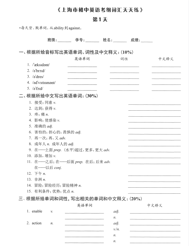 2026年上海市初中英语考纲词汇用法手册配套综合练习.pdf