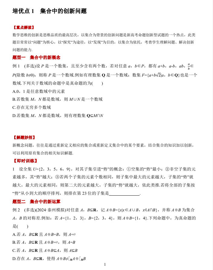 培优点1 集合中的创新问题