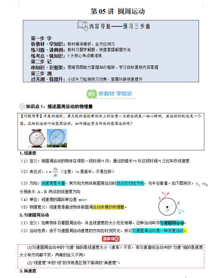 2026高一物理寒假预习讲义第05讲圆周运动(原卷版).docx