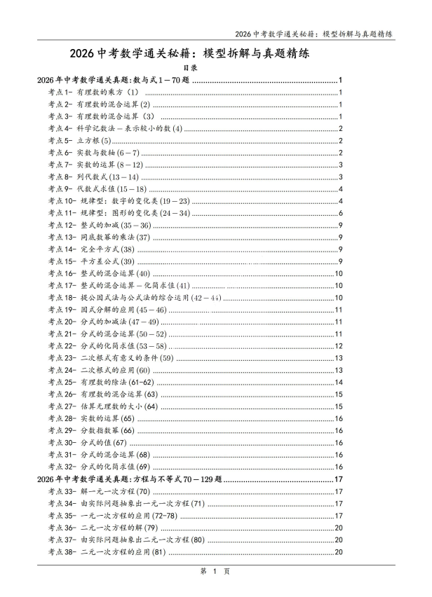 2026版中考数学《198个核心考点通关秘籍•687道真题精练》无答案版