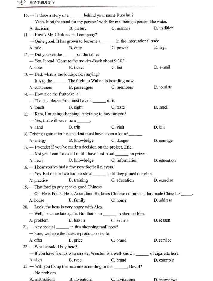 [初中]2026春英语《天下中考专题总复习》专题训练