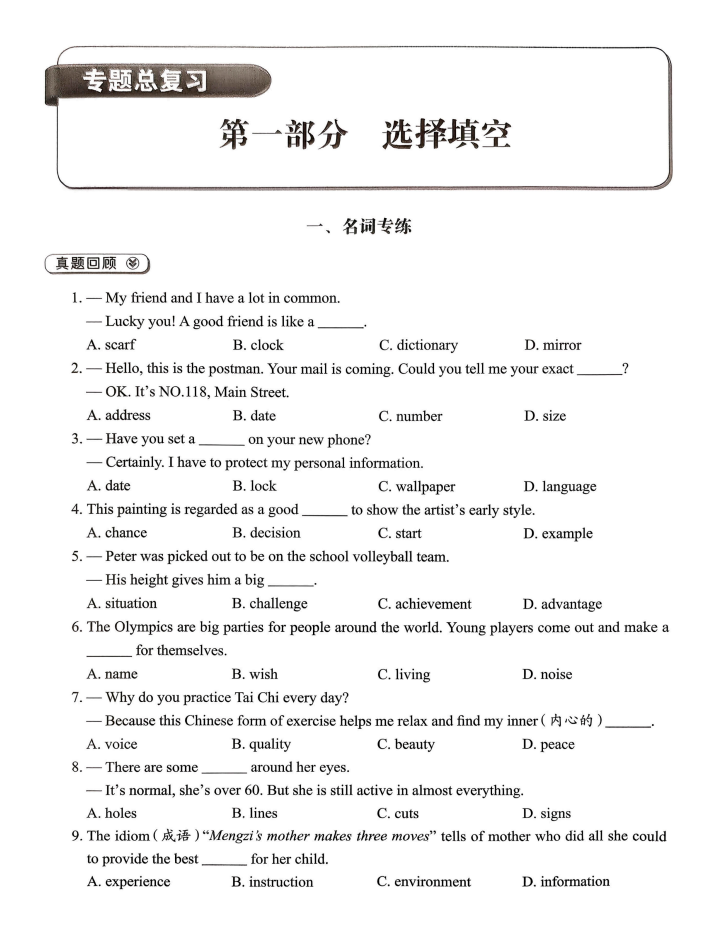 [初中]2026春英语《天下中考专题总复习》专题训练