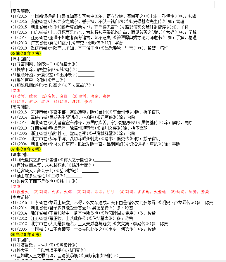 2026版高中【近10年高考·最常考的40个文言实词】(汇总)高考语文