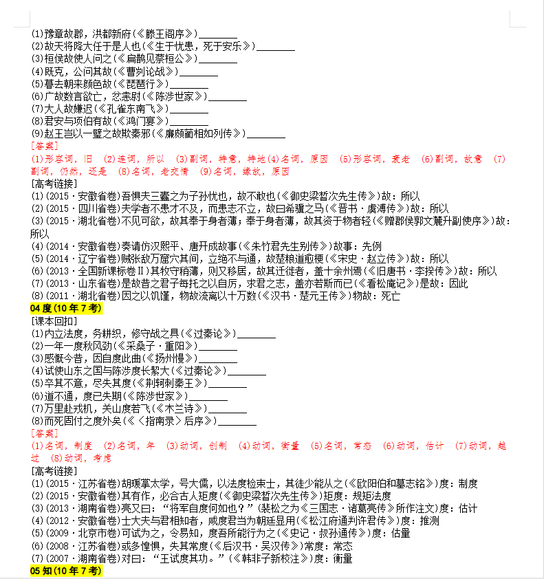 2026版高中【近10年高考·最常考的40个文言实词】(汇总)高考语文