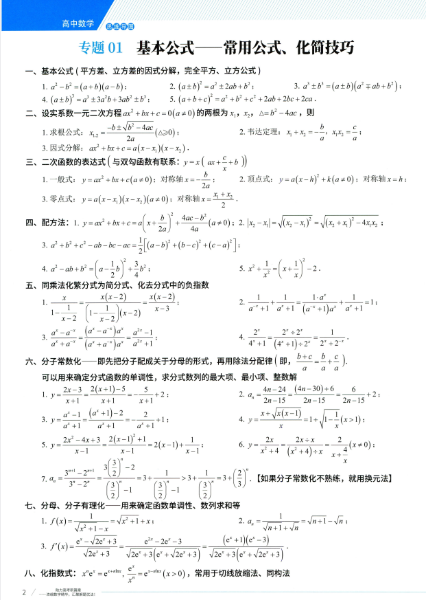 高中数学思维导图含学考、高考(18模块)常用公式、定理、性质