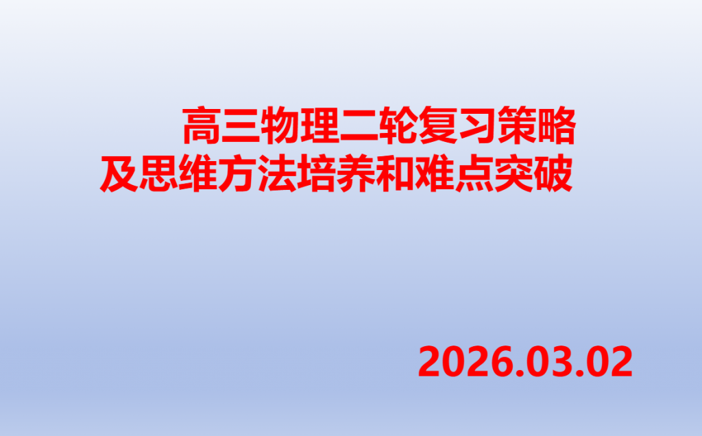 2026届高三物理二轮复习策略及思维方法培养和难点突破