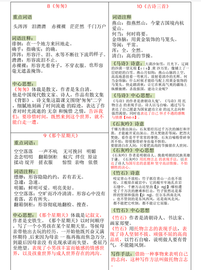 26春四年级下册语文[彩色重点一课一贴】.pdf