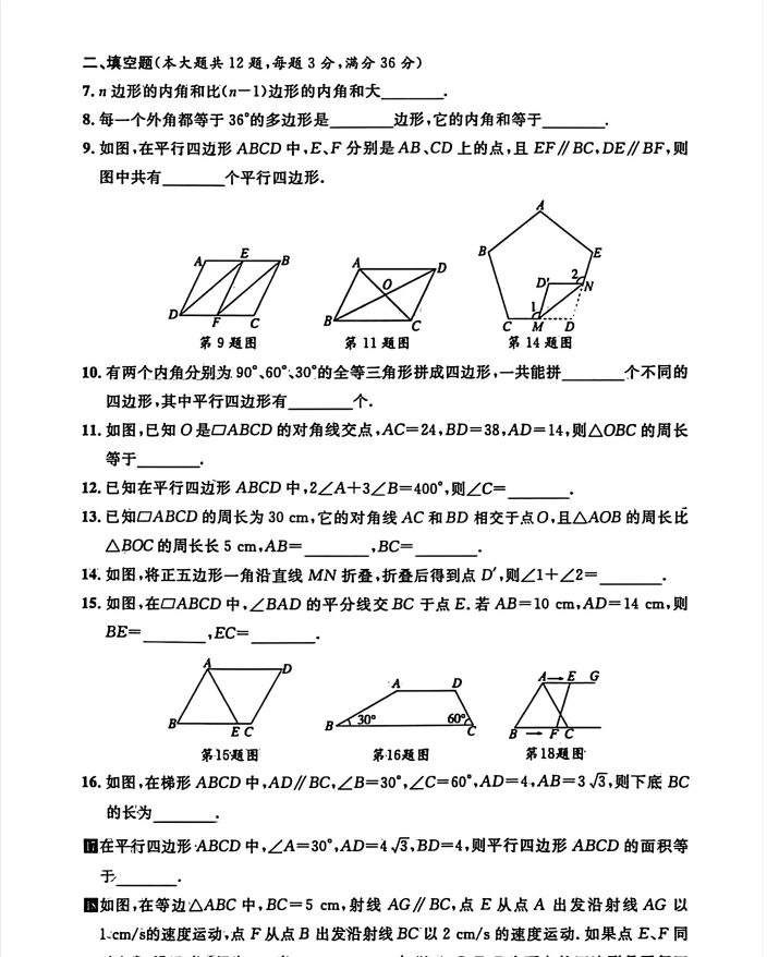 26春《满分练习与测试金试卷》8下数学金试卷答案.pdf