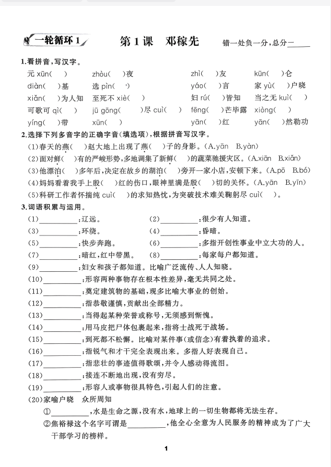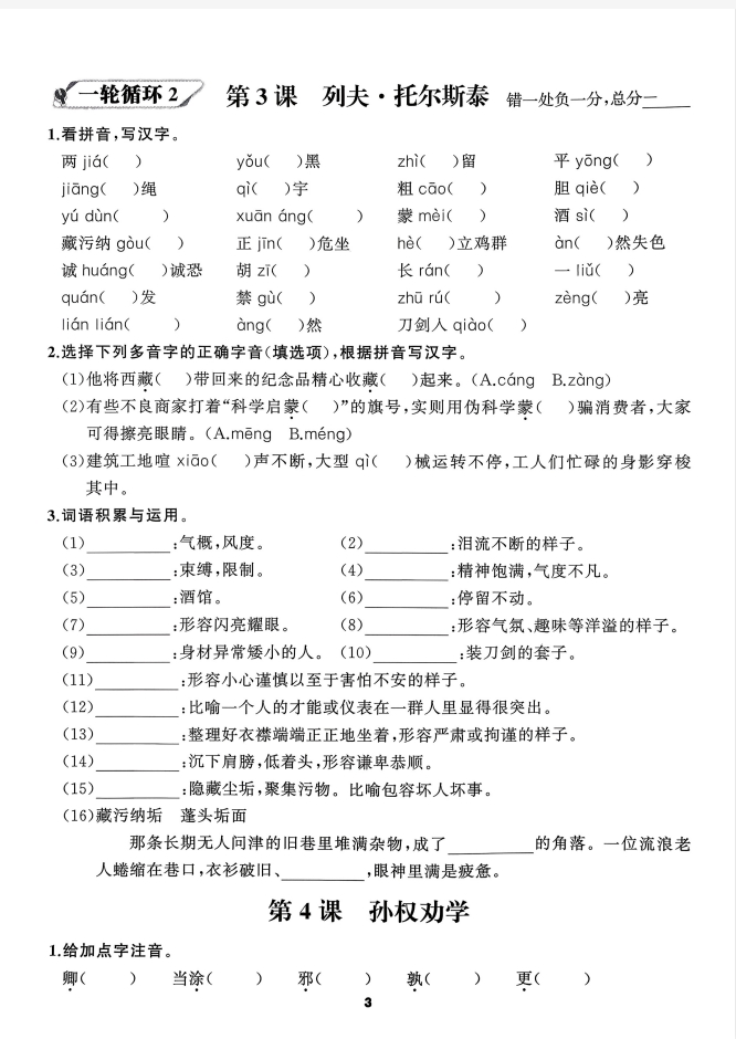 2026版《语文花开循环默写》78年级下册语文