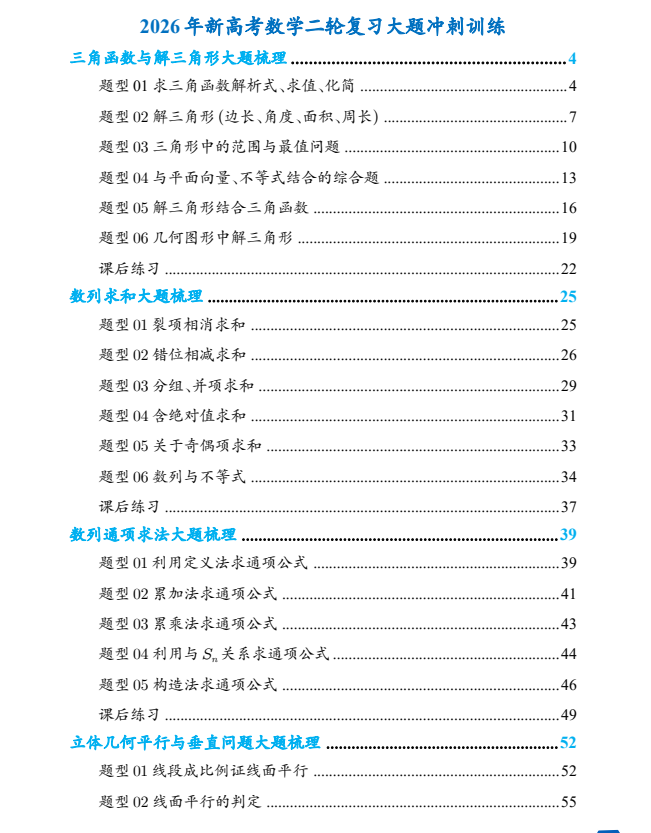 2026年新高考数学二轮复习大题冲刺训练教师版+学生版(pdf+word)