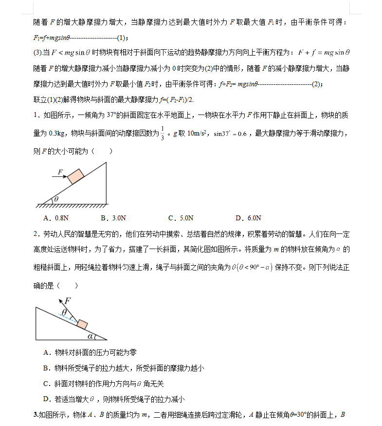 2026版高考物理模型讲义专题03斜面模型(原卷版).docx
