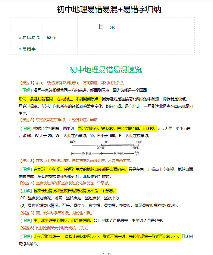 初中地理易错易混+易错字归纳(知识清单)(全国通用)2026年中考地理一轮复习讲练测.docx