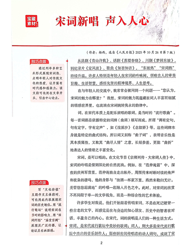 2026版初中【人民日报】中考作文宝藏素材(2026版全4册)(语文)