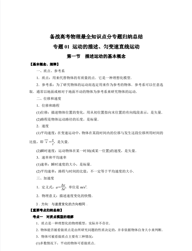 2026高考物理:临考考前知识点分专题归纳总结(纯净172页完整版)