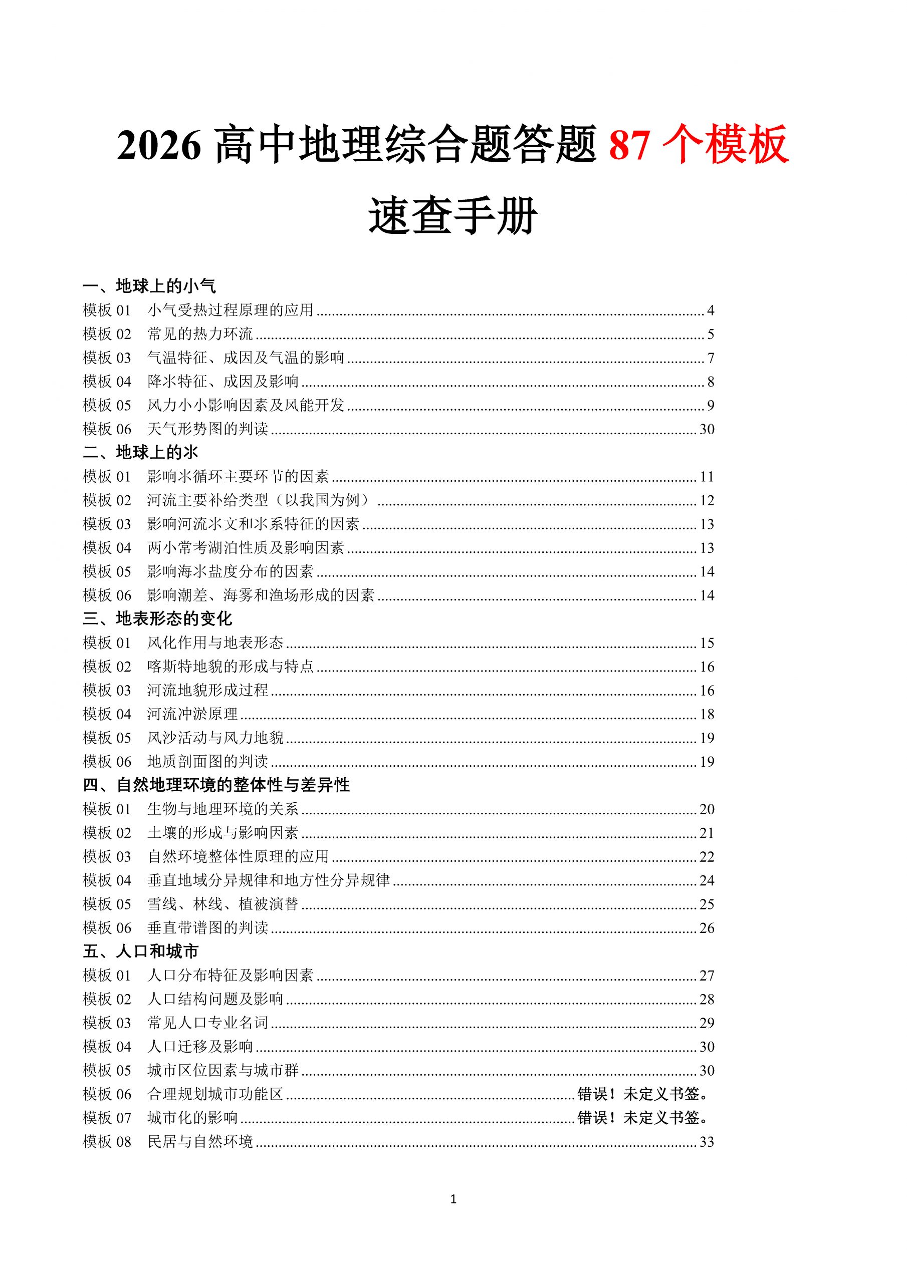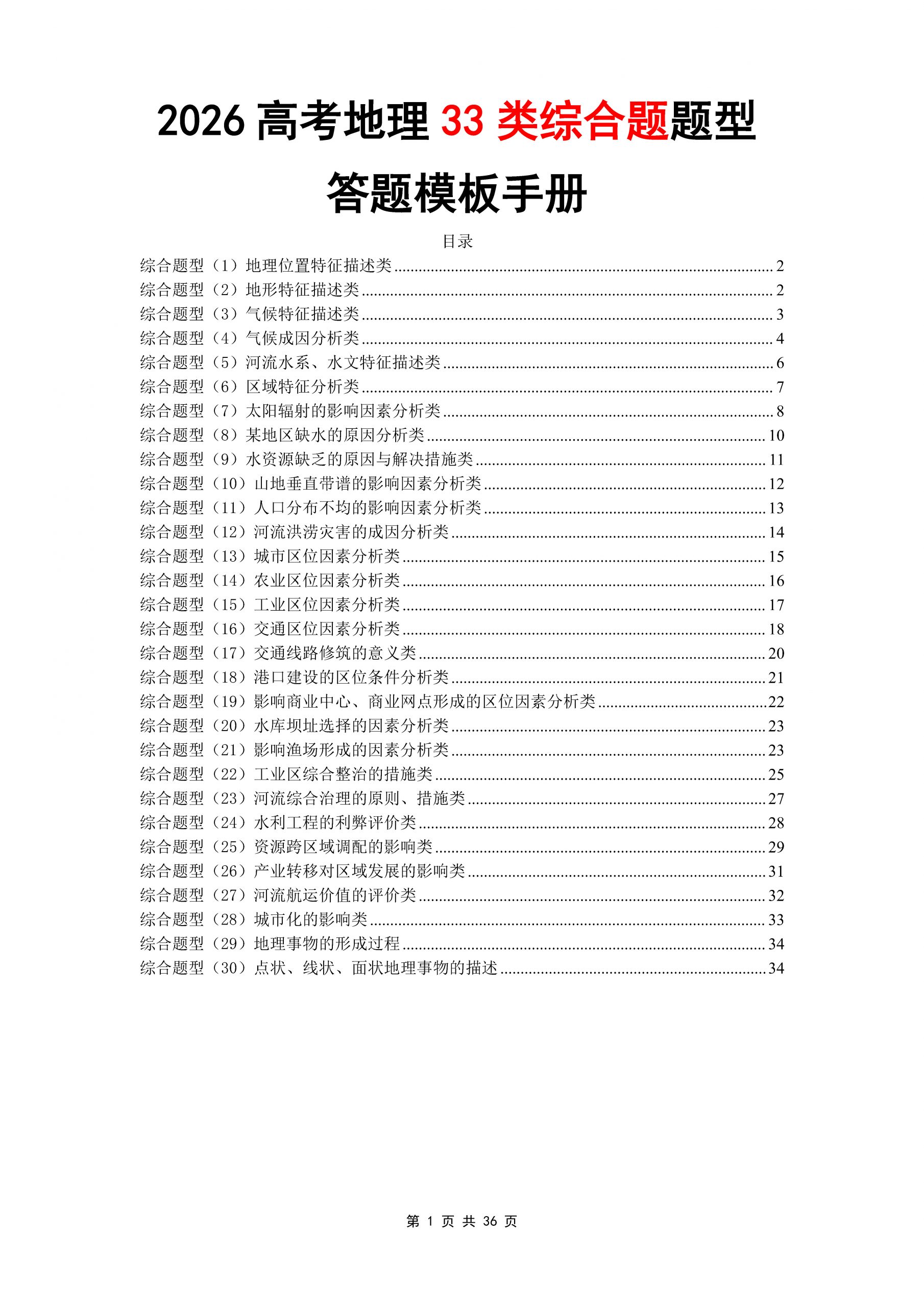 2026高考地理33类綜合题题型答题模板手册.doc