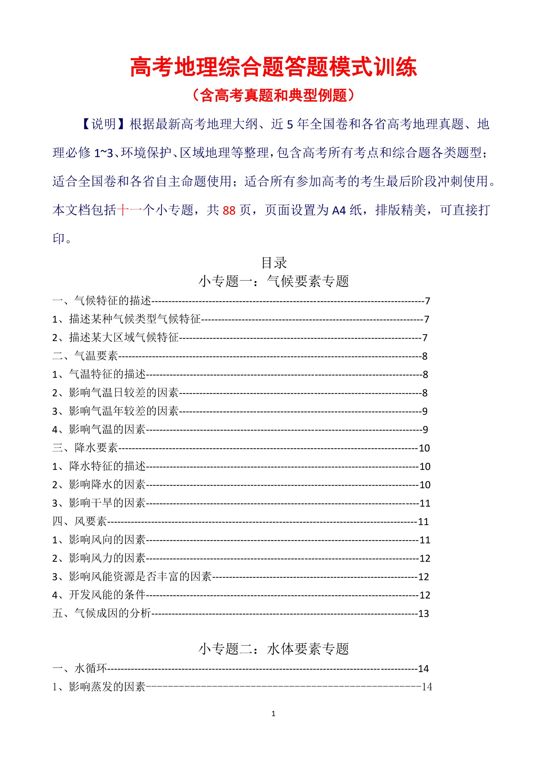 2026高中地理11个专题综合题答题模式训练(附精选题演练)88页.