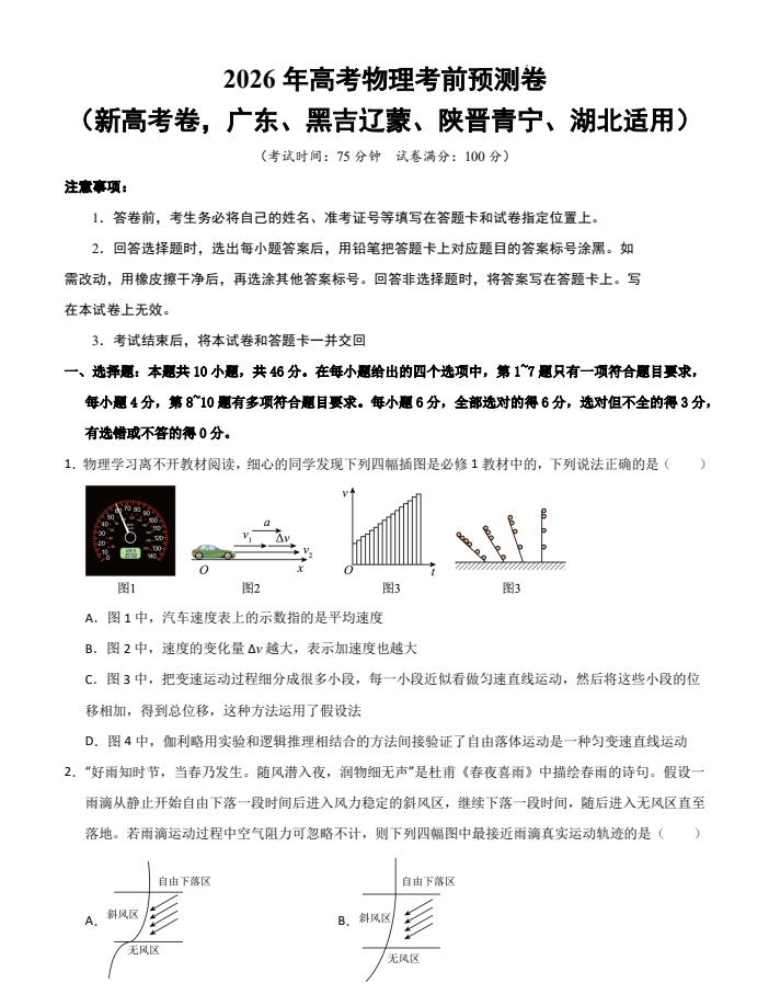 2026版高中【高考物理考前预测卷】(新高考卷,广东、黑吉辽蒙、陕晋青宁、湖北适用)