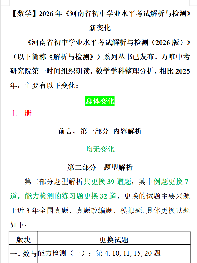 【数学】2026《河南省初中学业水平考试解析与检测》新变化.docx