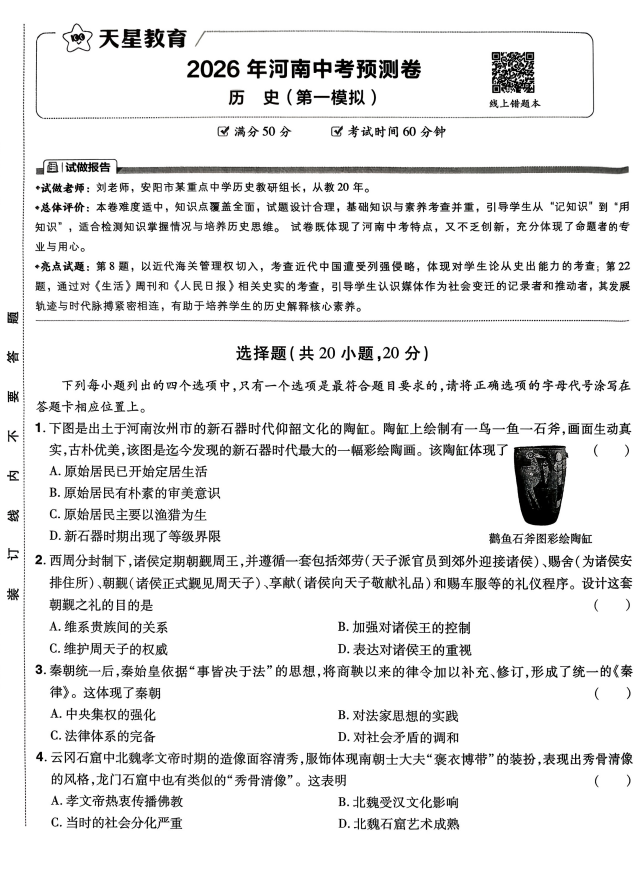 2026《天星教育·金考卷中考预测卷》历史(河南)讲评式解析.pdf