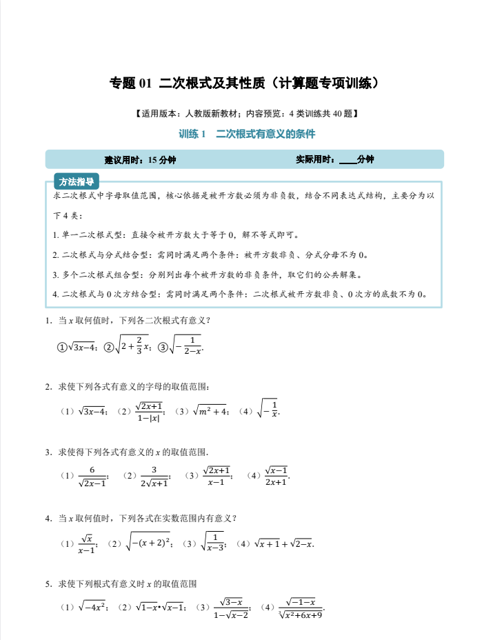 【初中】2026版数学《计算题专项训练系列》8年级下册(人教版)
