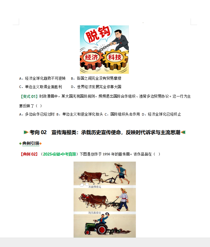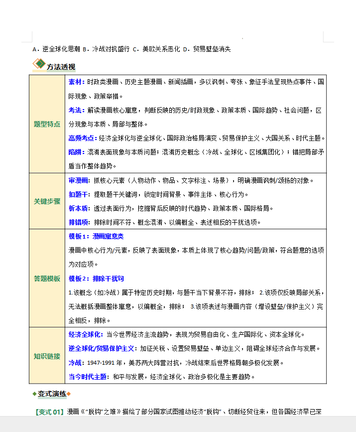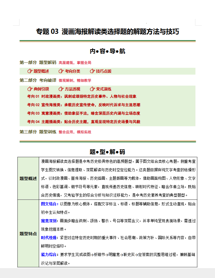 漫画海报解读类选择题的解题方法与技巧(题型专练)(全国通用)