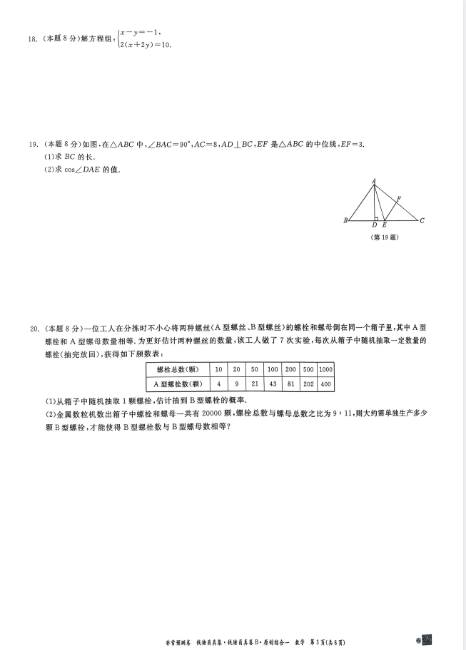 2026《初中数学·钱塘甬真卷B非常预测卷》·pdf