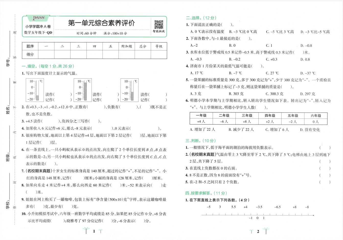 2026《PASS绿卡·小学学霸冲A卷》(5年级下)(数学)(青岛63版)