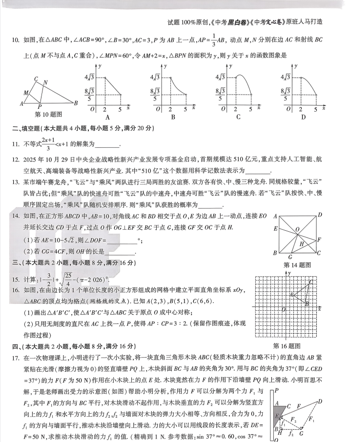 2026《万唯•原创定制卷一》(中考)(7科全)(安徽版)