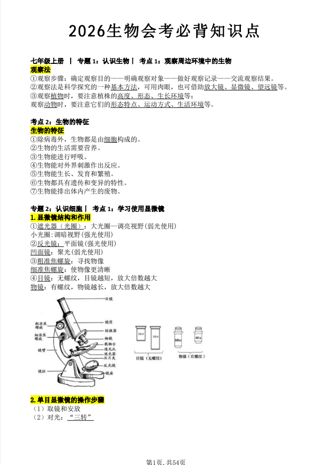 2026初中生物会考背诵本(人教版)·pdf