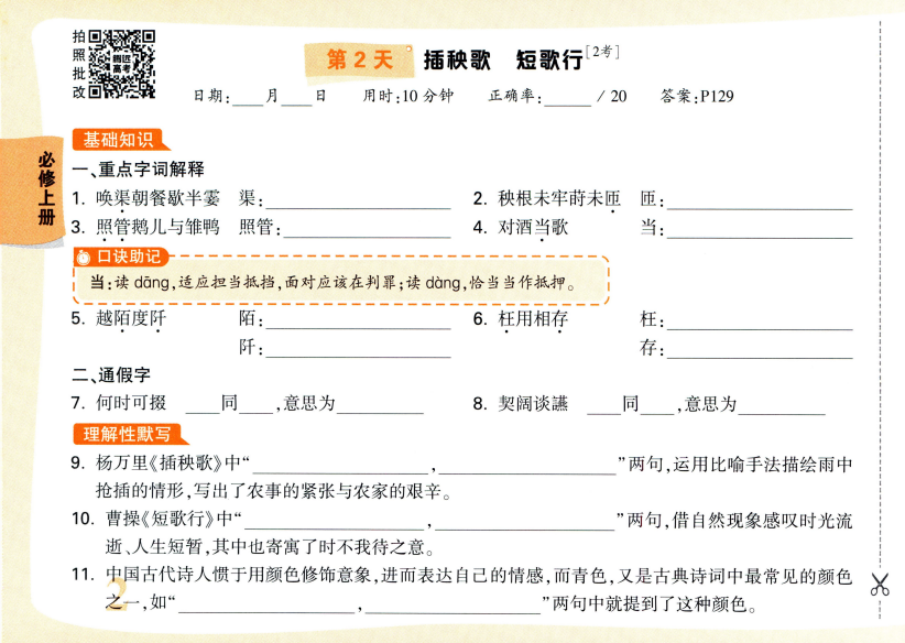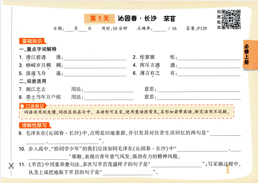 2026版腾远高考语文考点默写小纸条!(必修选必修全册,10分钟轻松默)
