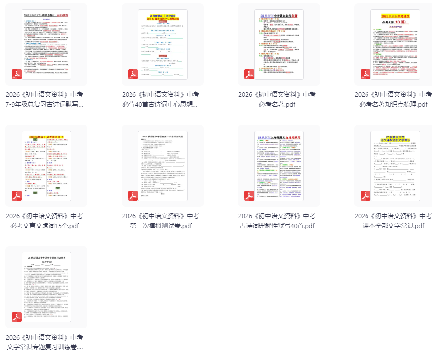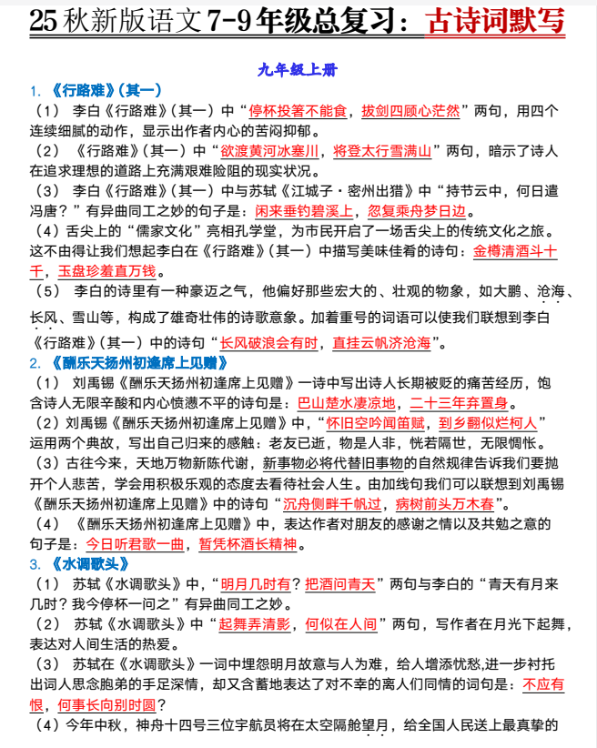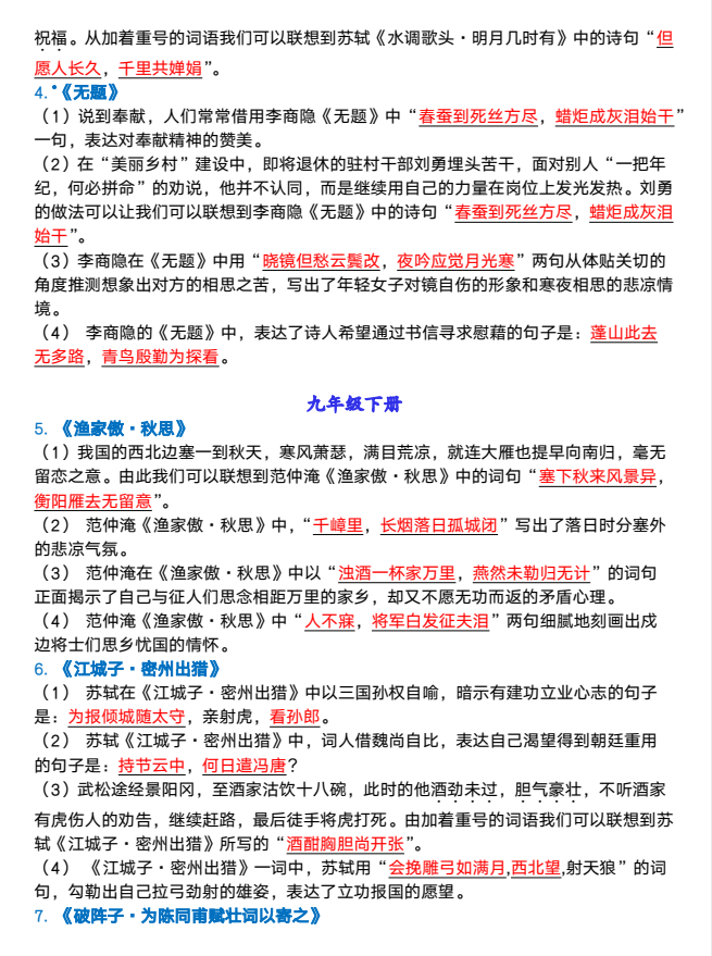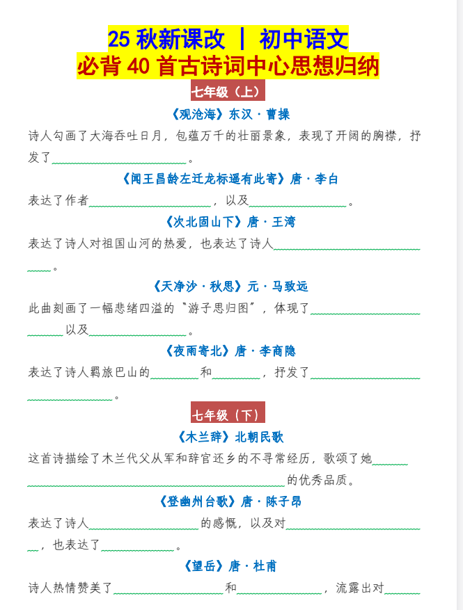 2026《初中语文资料》中考7-9年级总复习古诗词默写.pdf