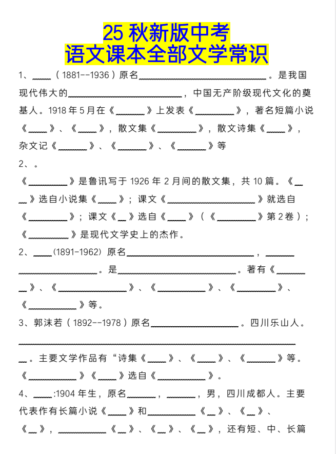 2026《初中语文资料》中考课本全部文学常识.pdf