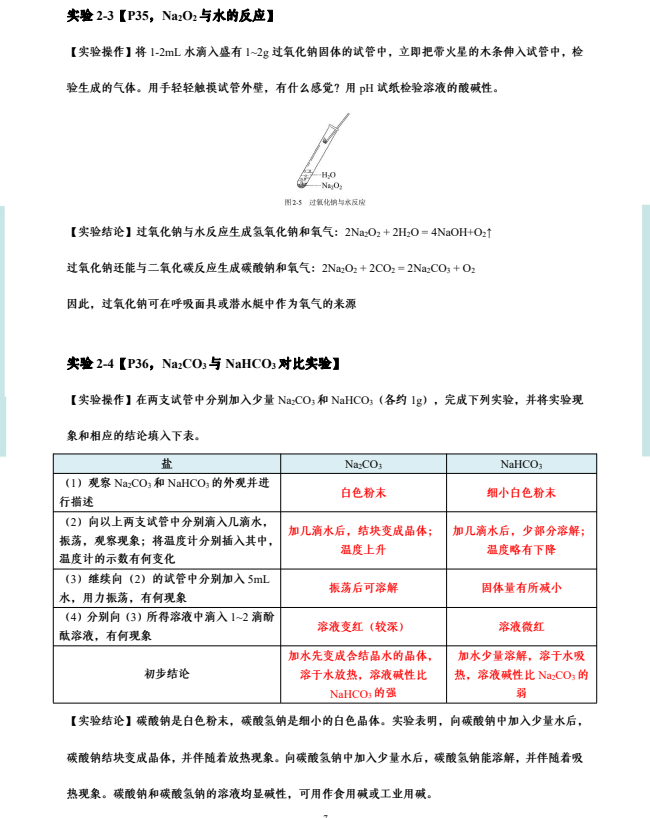 实验 2-4【P36,Na2CO3与 NaHCO3对比实验】………………………………………………………7