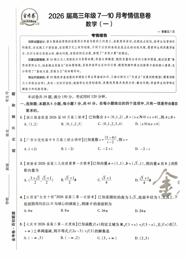 2026版高中【金考卷•百校联盟-高考领航卷】(数学)(新高考版)含答案