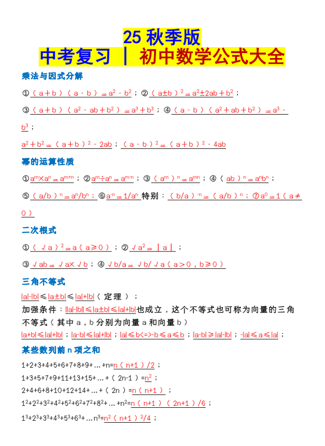 2025秋季版最新初中数学最新资料大全集