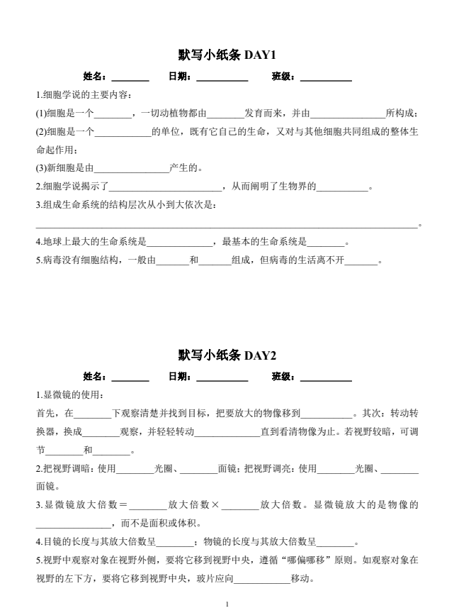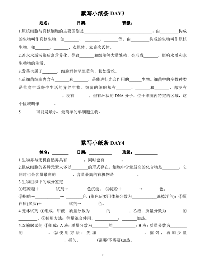 2026版高中《生物默写小纸条》教材同步版(人教)