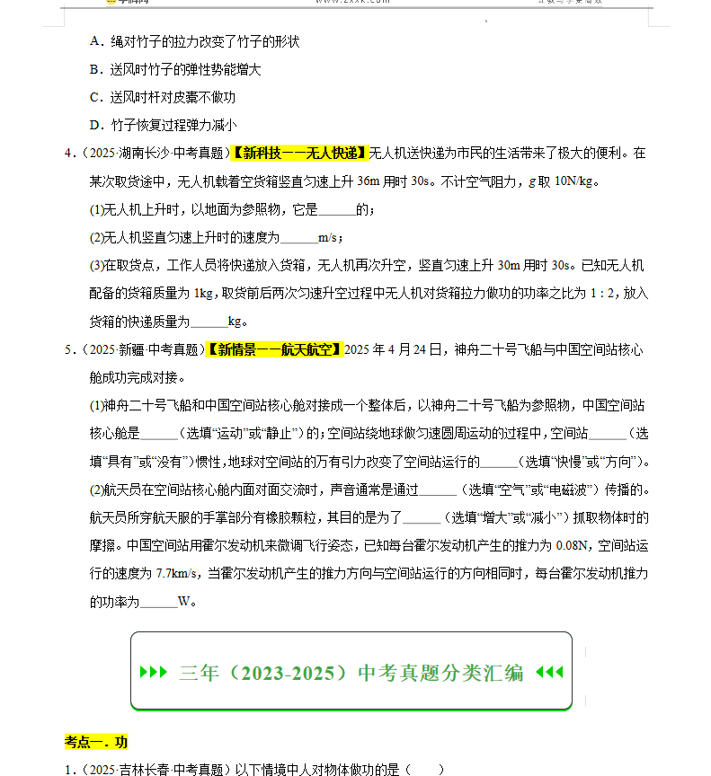【好题汇编】三年(2023-2025)中考物理真题分类汇编(全国通用)