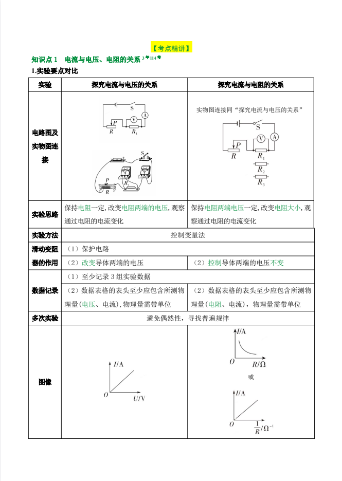 《中考核心考点精准突破》“欧姆定律”.pdf物理第5期:”电流与电压、电阻的关系”