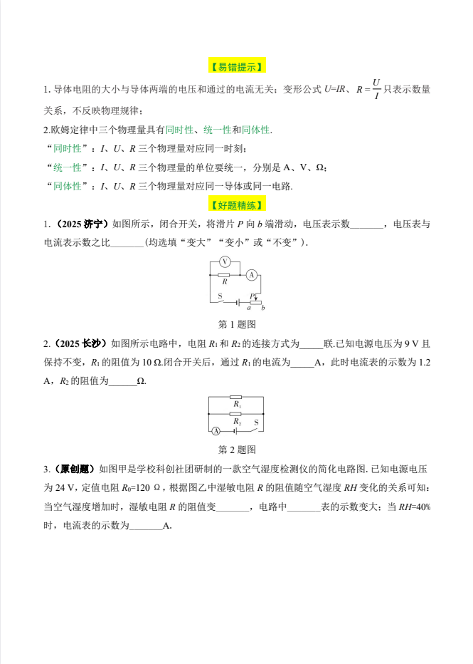 《中考核心考点精准突破》物理第6期:电阻&欧姆定律,pdf