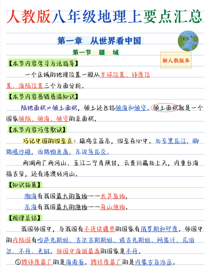 2026版初中【期末复习】核心笔记8年级上册(8科全套教材同步版)