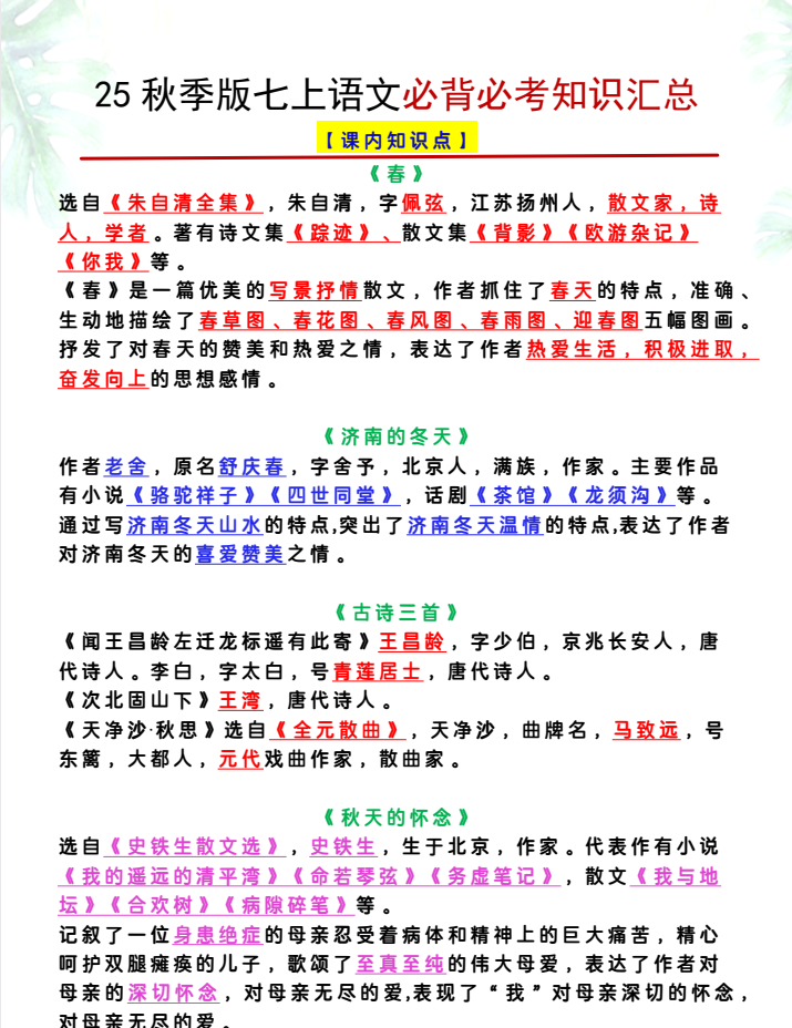 【2025秋新版】七上语文必背必考知识汇总.pdf