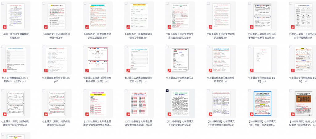 25准初一暑假七上语文必背内容早背晚默,pdf