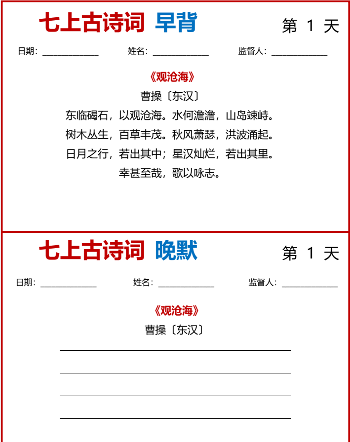 七上语文古诗词12天早背晚默小纸条(分享)pdf