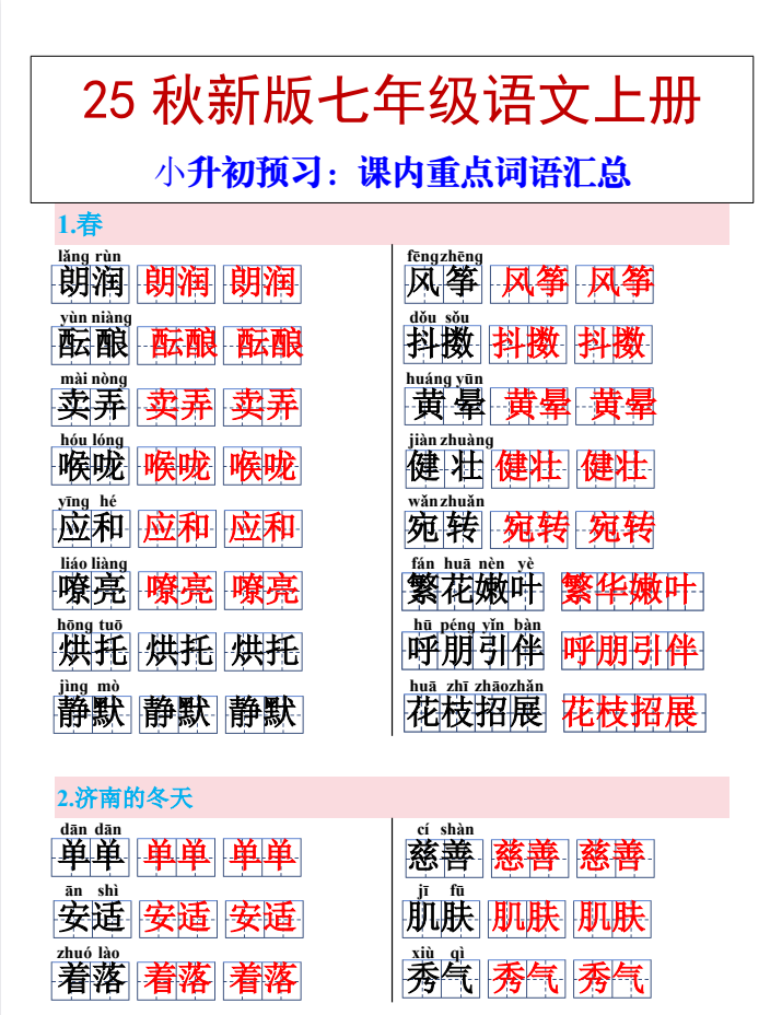 【2025秋新版】七年级上册语文课内重点词语汇总.pdf