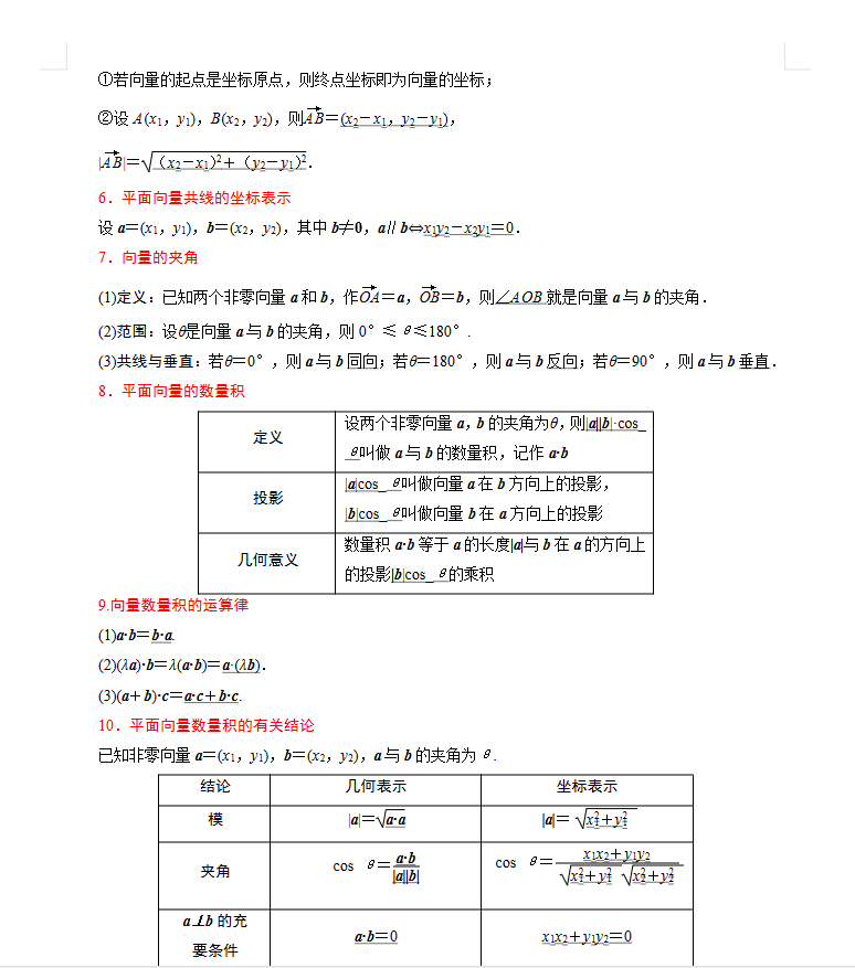 新人教版高中数学重点 第六章 平面向量及其应用(公式、定理、结论图表).docx