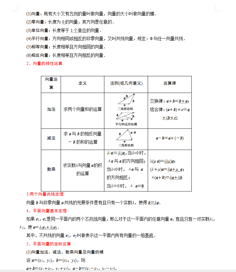 新人教版高中数学重点 第六章 平面向量及其应用(公式、定理、结论图表).docx