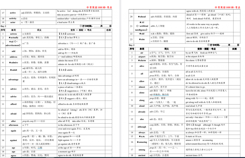 2026版初中【狂背课标1600词】1600词核心考点