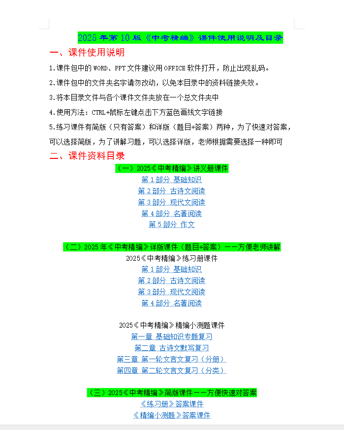 2025年第10版<<中考精编>>课件使用说明及目录.docx