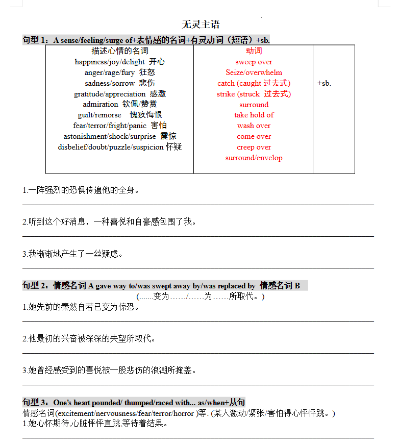2026版高中【高考十大语法万能句式】读后续写+在高考英语中的应用+练习