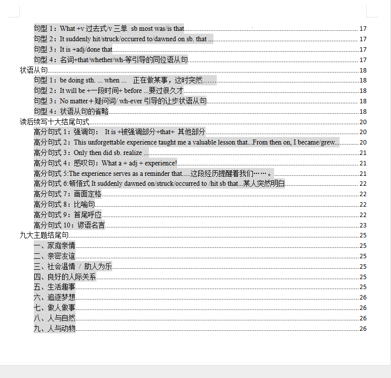 2026版高中【高考十大语法万能句式】读后续写+在高考英语中的应用+练习